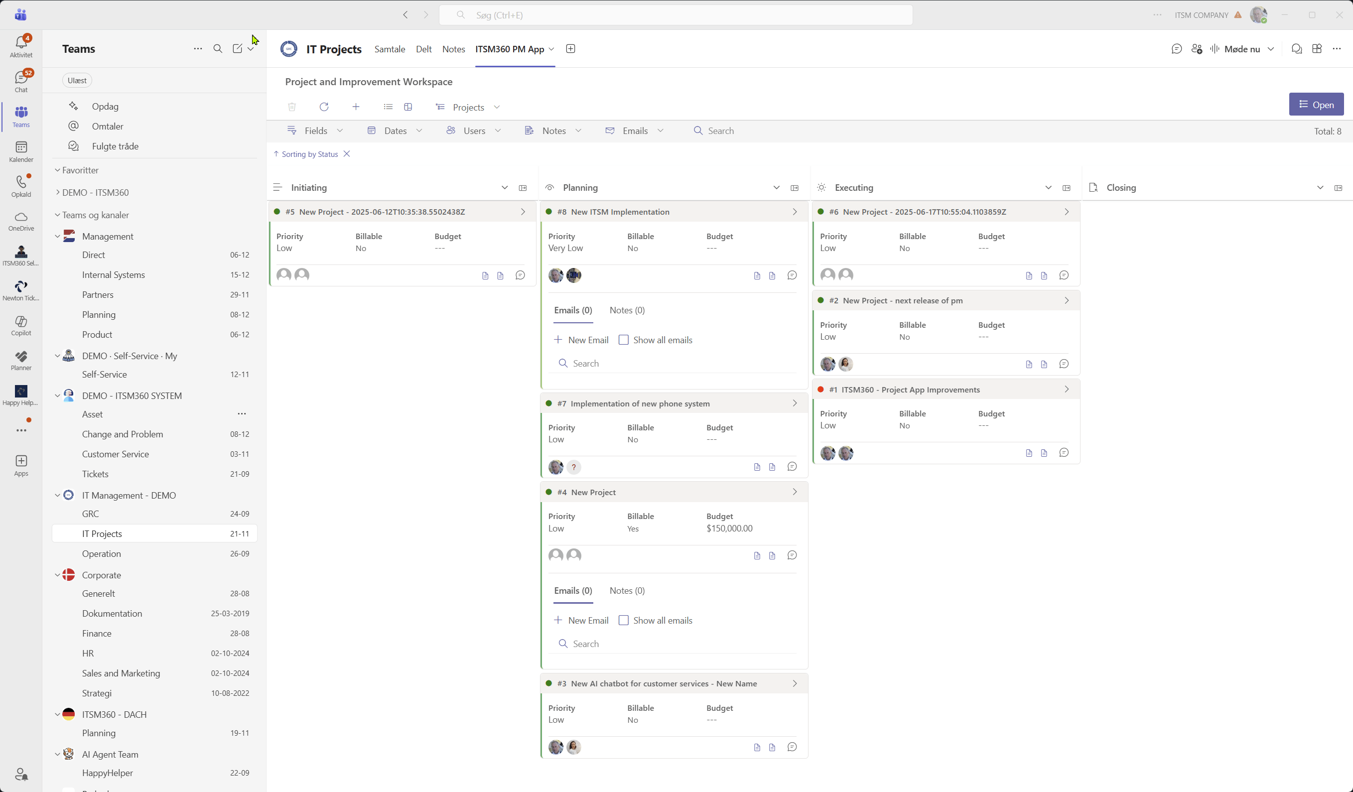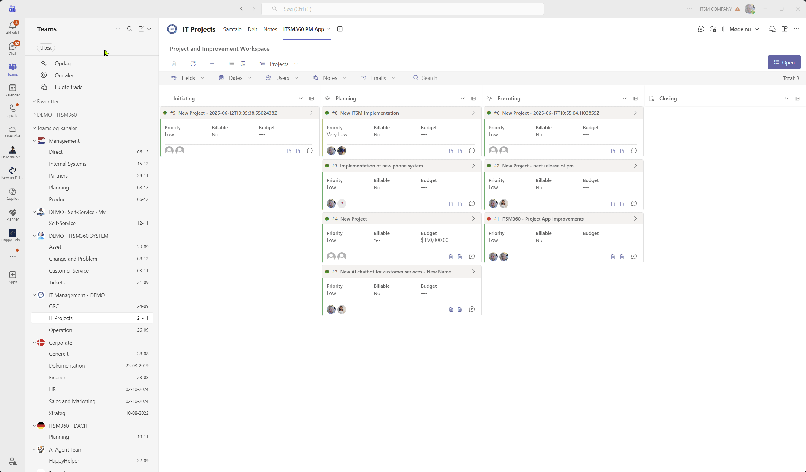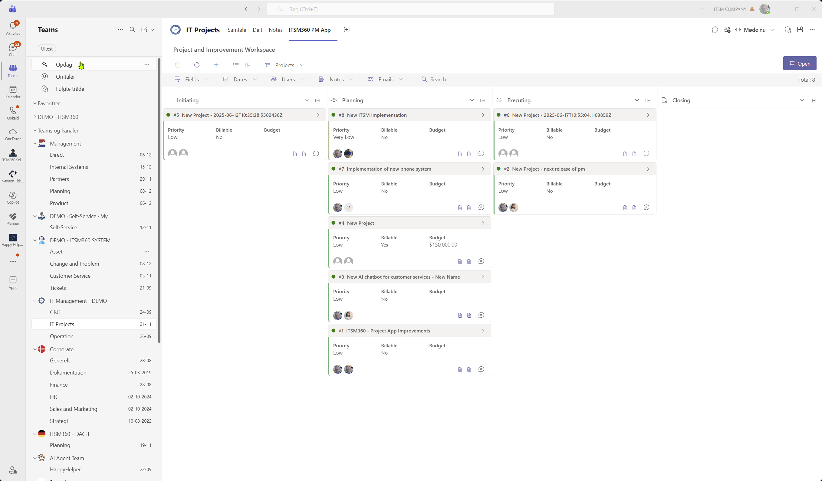 Manage your IT Project Portfolio from the app, where projects can be created directly or via an automation powered by Microsoft Power Automate, including pre-filling the project with the required prerequisites.